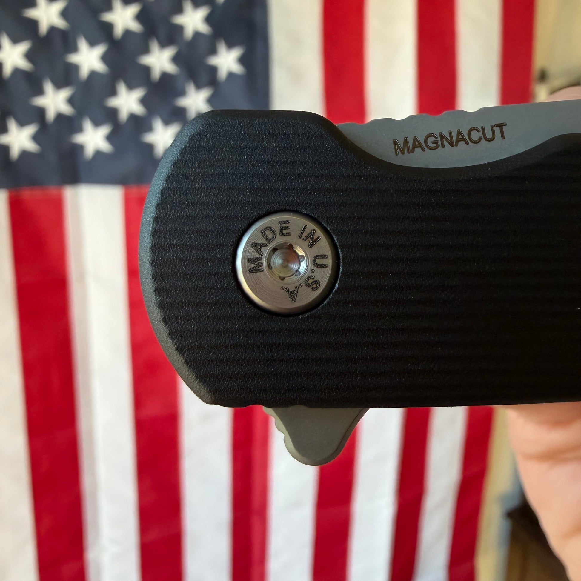 The blade is made from MagnaCut stainless steel, heat treated and cryogenically tempered for a well-balanced combination of: