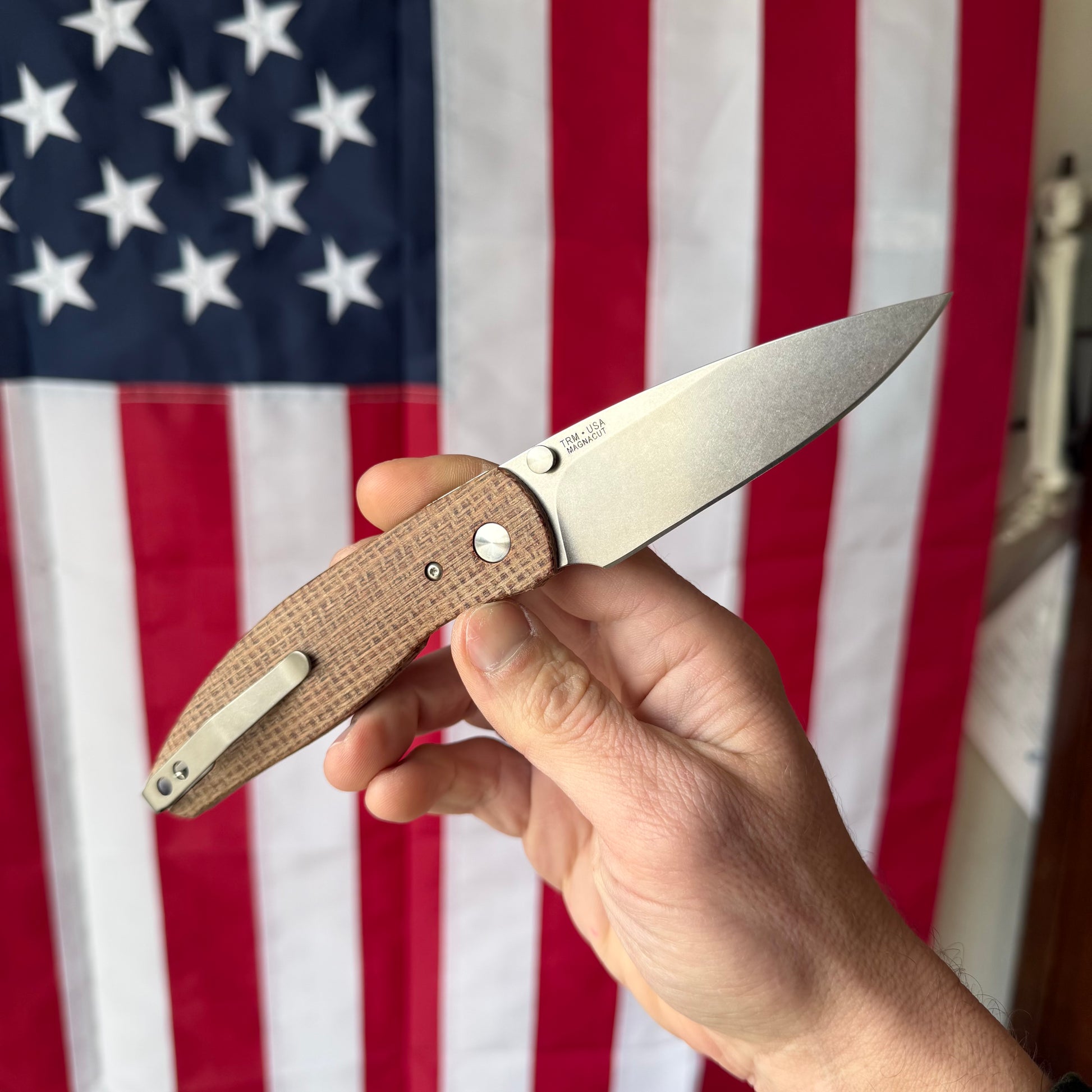 TRM ATOM LL Burlap Micarta, 3.5″ MagnaCut Blade, Made in USA